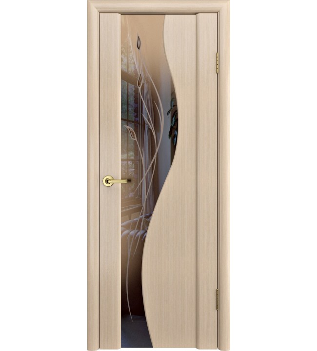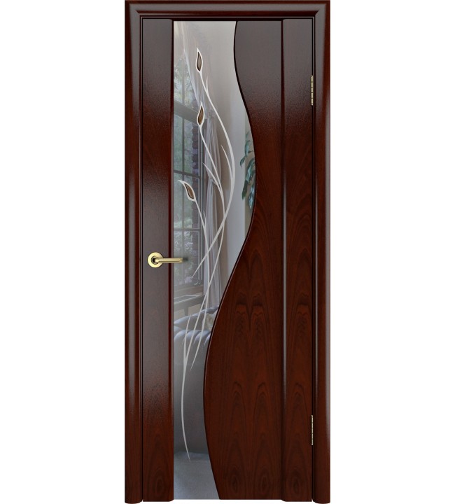 Шпонированная дверь Грация зеркало с рисунком