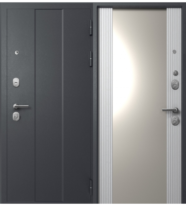 Входная дверь Mega-5 Графит муар/Белый снег